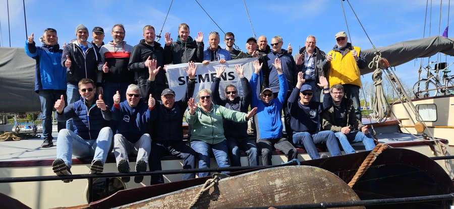 Wir stachen mit zwanzig wackeren Siemens-Recken in See und verbrachten ein gar herrliches Wochenende an Bord der stolzen Nirwana. Das sympathische Skipper-Duo, Irene und David, führte uns mit sicherer Hand durch Wind und Wellen, von Enkhuizen gen Stavoren und wohlbehalten wieder zurück in den Heimathafen. Bei strahlendem Sonnenschein und frischer Brise packte die Mannschaft tüchtig mit an – kein Tau blieb ungezogen, kein Manöver ungekonnt. Mit vereinten Kräften wurden Segel gesetzt und geborgen.